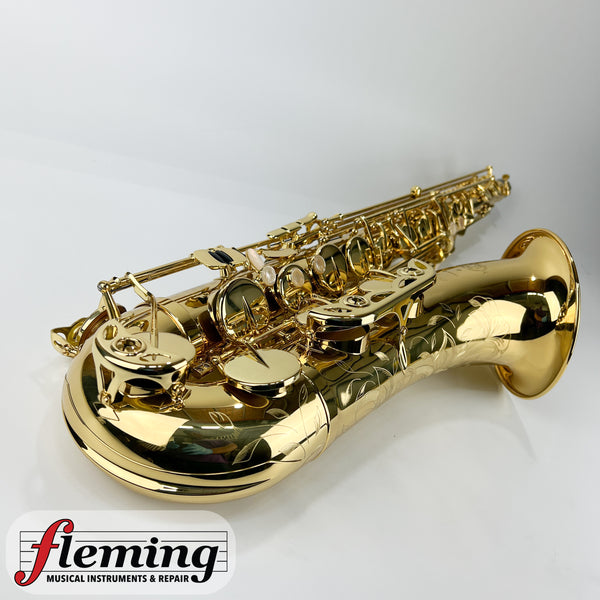 Built in the spirit of great accessibility for the saxophonist, the extension to create the tenor version of the Axos saxophone came naturally. As an entry-level professional saxophone, it has the same qualities as other Henri Selmer Paris saxophones including: great flexibility, accuracy, and projection. Its great ease of playing and rich timbre make it an ideal instrument, whatever the level of playing, both as a soloist and in ensemble performance. The fingers rest naturally on its strong, durable, and ergonomically comfortable keywork. The warm lacquer shade and the finesse of its engraving are the hallmarks of a great tenor saxophone.